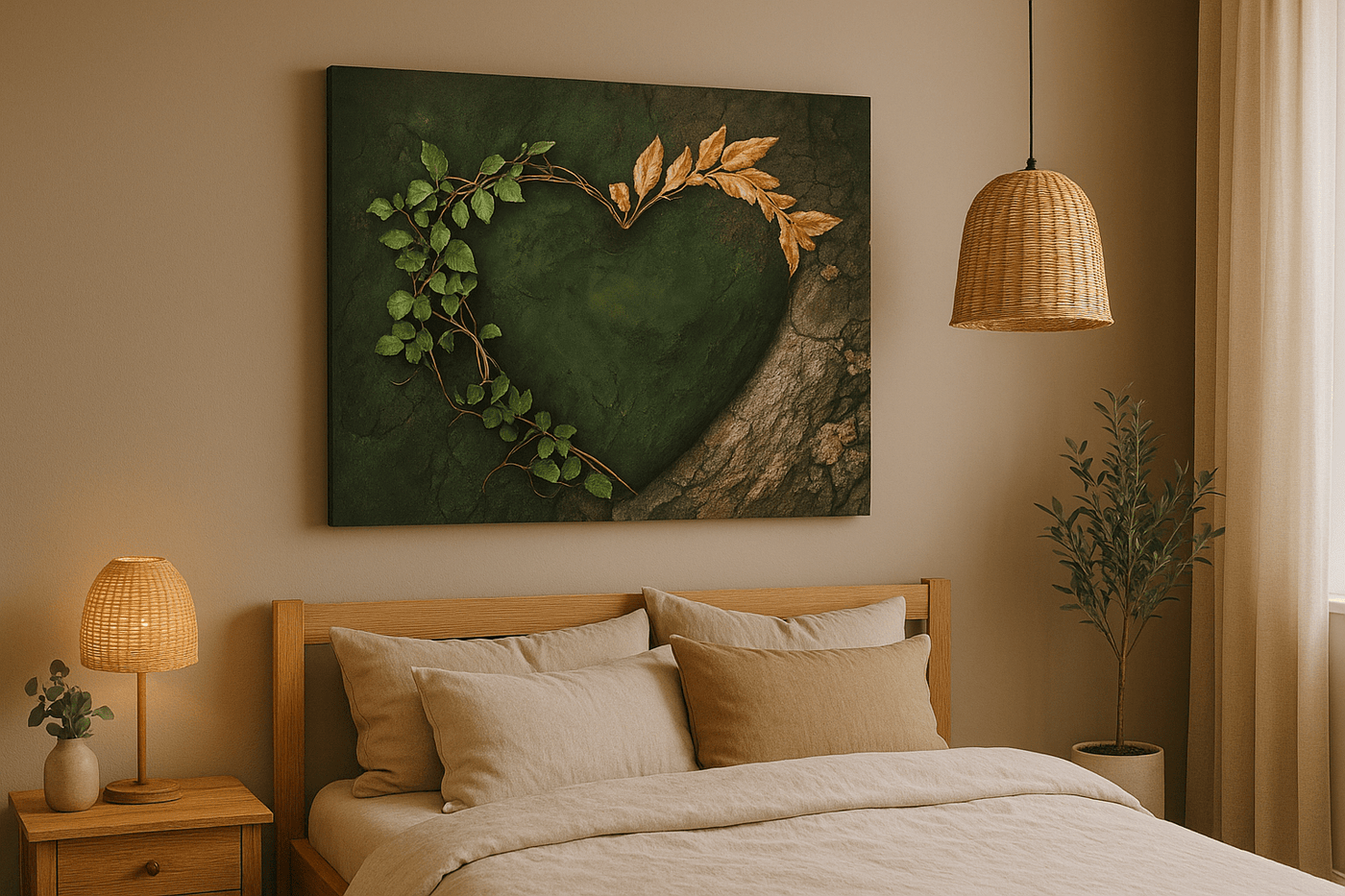 Forest Heart Wall Art Canvas – Nature Love Tree Artwork for Living Room & Bedroom Decor - 40W x 30H inch Large Wood Frame / Classic Canvas