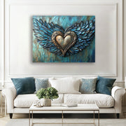 Blue Heart Feather Wall Art – Elegant Canvas for Modern Interiors - 40W x 30H inch Large Wood Frame