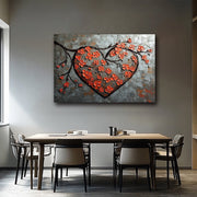 "Heart in Bloom" - Textured Look Metallic Floral Wall Art Canvas - Classic Canvas / 60W x 40W inch Large Wood Frame