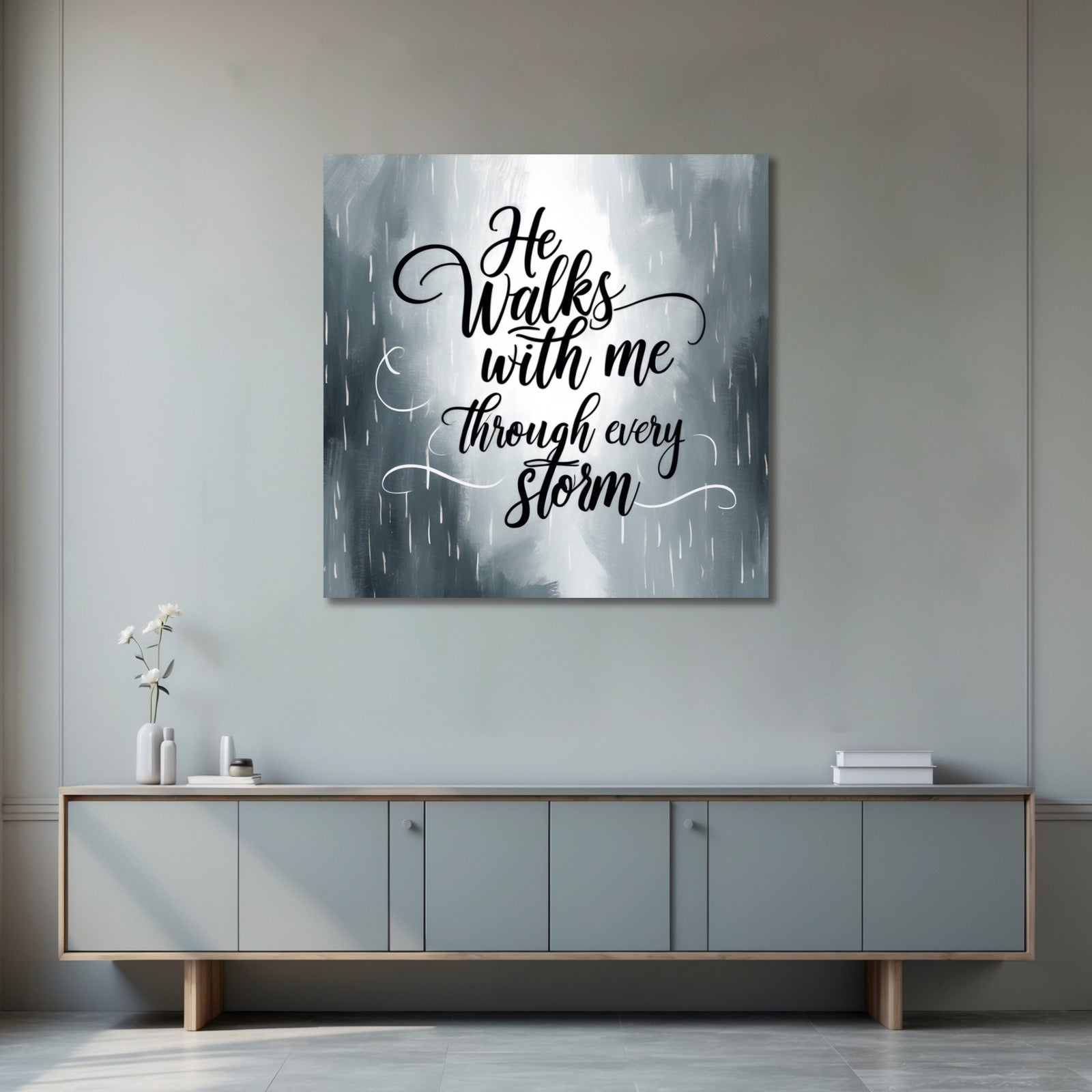 When life gets overwhelming, let this canvas be your daily reminder of His unfailing presence. The He Walks With Me Through Every Storm wall art captures both the strength of faith and the comfort of divine companionship with a stunning rainstorm-inspired design and elegant script.