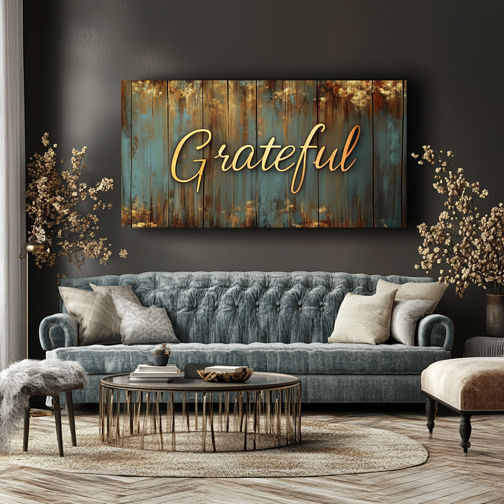 Grateful Wall Art – Inspirational Quote Canvas for Home and Living Room Decor